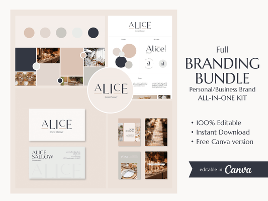 ALICE | EVENT - WEDDING PLANNER | Editable Personal Branding Kit | Canva Templates - Logos, Brand Board, Business Card, Email Signature, Social Media Kit