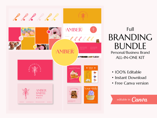 AMBER | BAKER - CHEF | Editable Personal Branding Kit | Canva Templates - Logos, Brand Board, Business Card, Email Signature, Social Media Kit