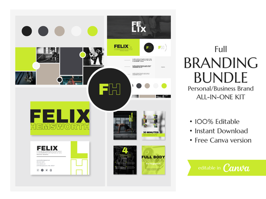 FELIX | TRAINER - FITNESS | Editable Personal Branding Kit | Canva Templates - Logos, Brand Board, Business Card, Email Signature, Social Media Kit