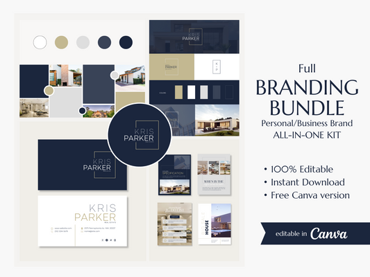 KRIS | REAL ESTATE - REALTOR - EXPERT | DYI Personal Branding Kit | Canva Templates - Logos, Brand Board, Business Card, Email Signature, Social Media Kit