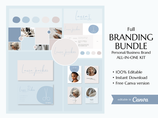 LAURA | HAIRSTYLE - SALON | Editable Personal Branding Kit | Canva Templates - Logos, Brand Board, Business Card, Email Signature, Social Media Kit