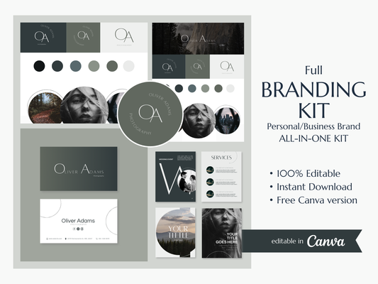 OLIVER | PHOTOGRAPHY | Editable Branding Kit | Canva Templates - Logos, Brand Board, Business Card, Email Signature, Social Media Kit