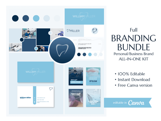 WILLIAM | DENTIST | Editable Professional Branding Kit | Canva Templates - Logos, Brand Board, Business Card, Email Signature, Social Media Kit