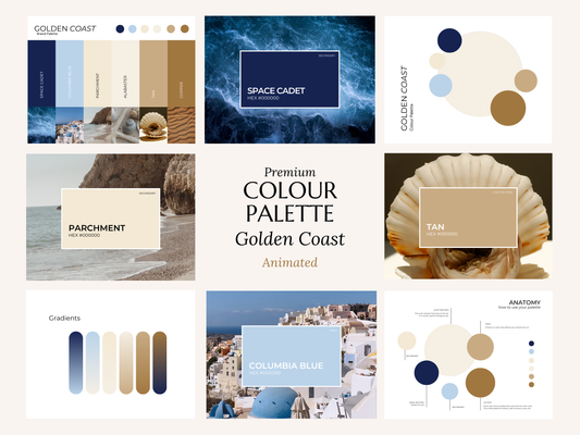 Golden Coast | Luxury Brand Palette | Editable Canva Template with Hex Codes | Blue Beige Gold Small Business Kit