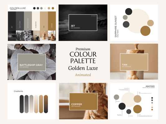 Golden Luxury | Luxury Brand Colour Palette | Editable Canva Template with Hex Codes | Black Beige Gold Palette