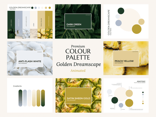 Golden Dreamscape | Luxury Brand Palette | Editable Canva Colour Palette with Hex Codes | Green, Blue, Gold Branding Kit