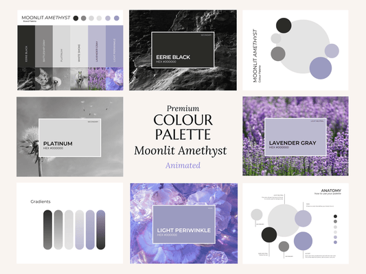 Moonlit Amethyst | Modern Brand Palette | Premium Editable Canva Colour Palette with Hex Codes | Black, Gray, Pruple