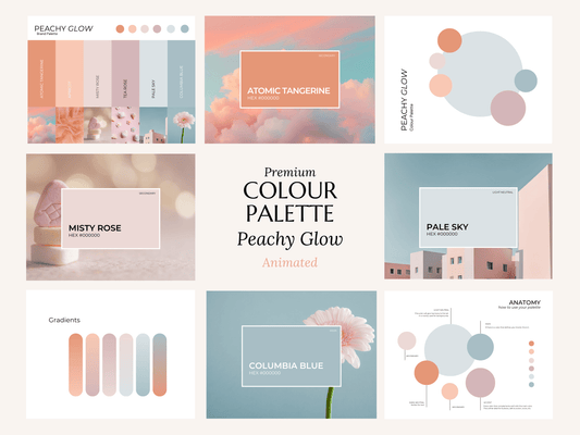 Peachy Glow | Modern Brand Palette | Premium Editable Canva Colour Palette with Hex Codes | Peach Blue Purple Branding Kit