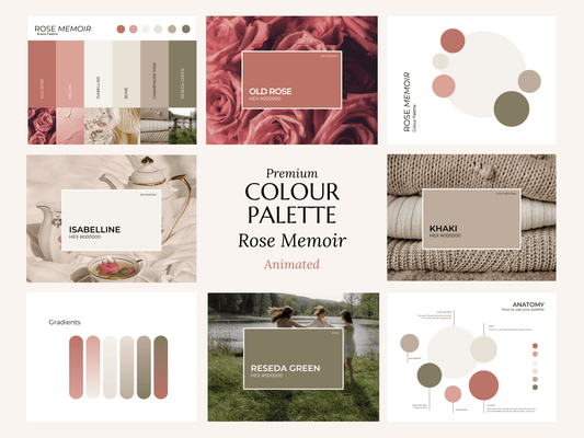 Rose Memoir | Luxury Brand Palette | Editable Canva Colour Palette with Hex Codes | Pink + Green + Beige Branding Kit