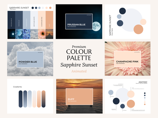 Sapphire Sunset | Modern Brand Palette | Premium Canva Colour Palette with Hex Codes | Blue + Peach Branding Kit