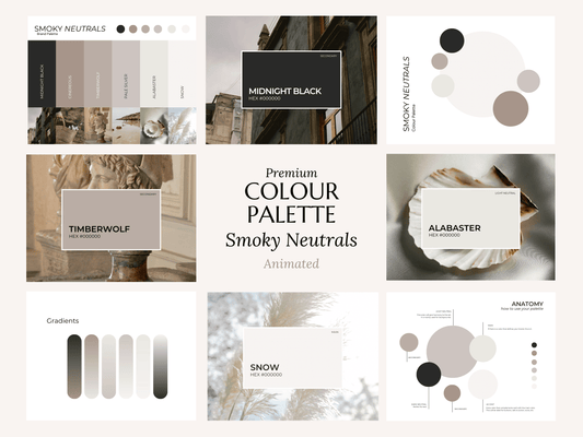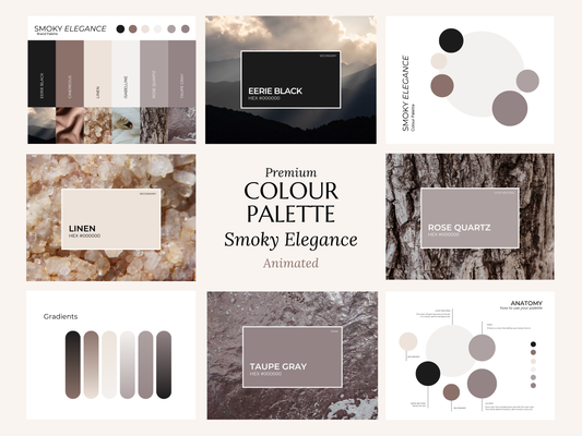 Smoky Neutrals | Luxury Colour Palette | Editable Canva Template with Hex Codes | Brown + Black Small Business Branding Kit