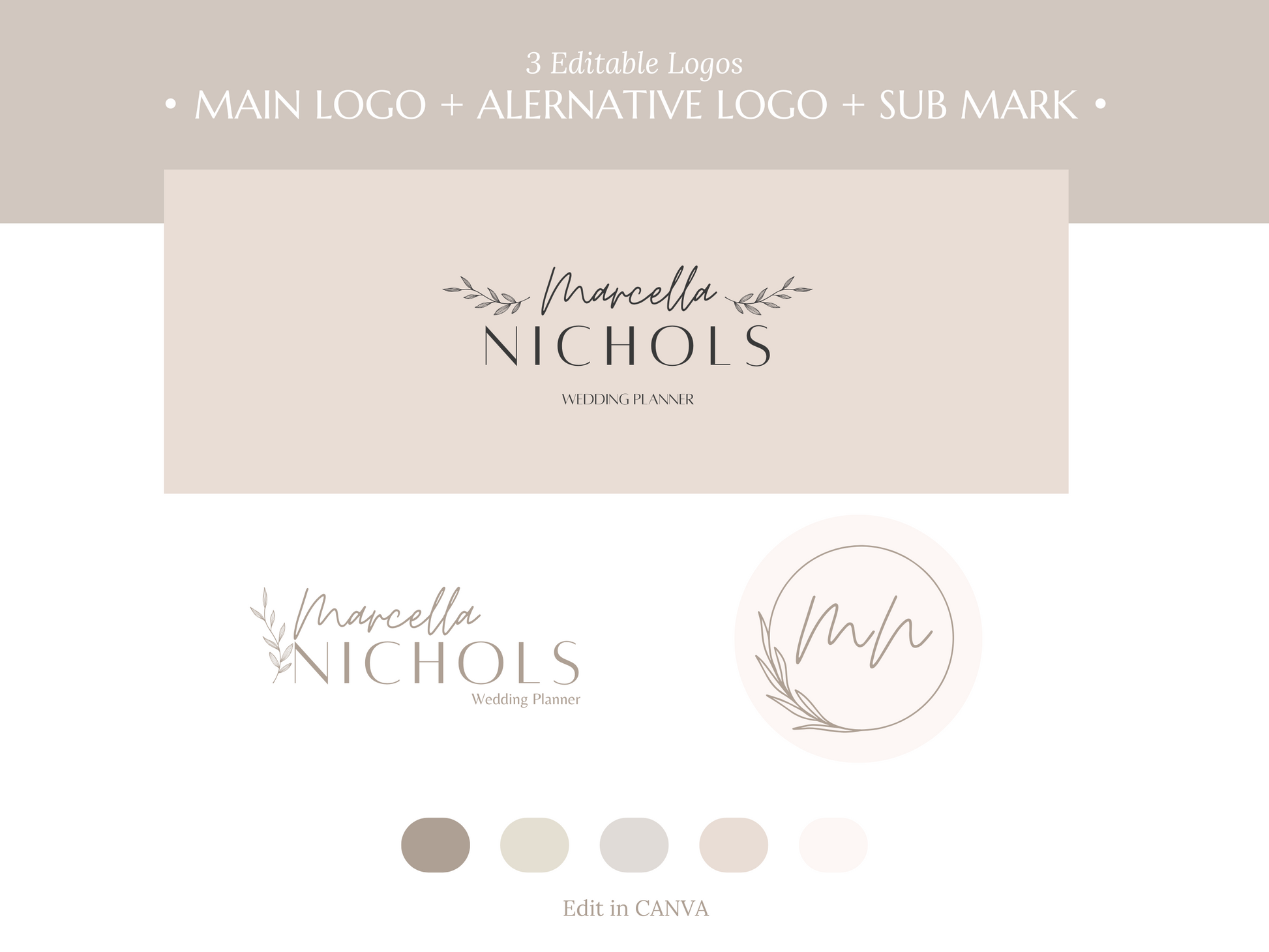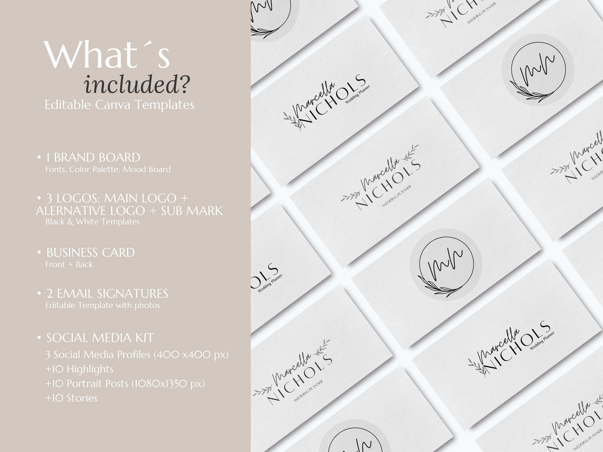 MARCELLA | WEDDING - EVENT PLANNER | DYI Personal Branding Kit | Canva Templates - Logos, Brand Board, Business Card, Email Signature, Social Media Kit
